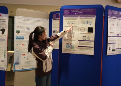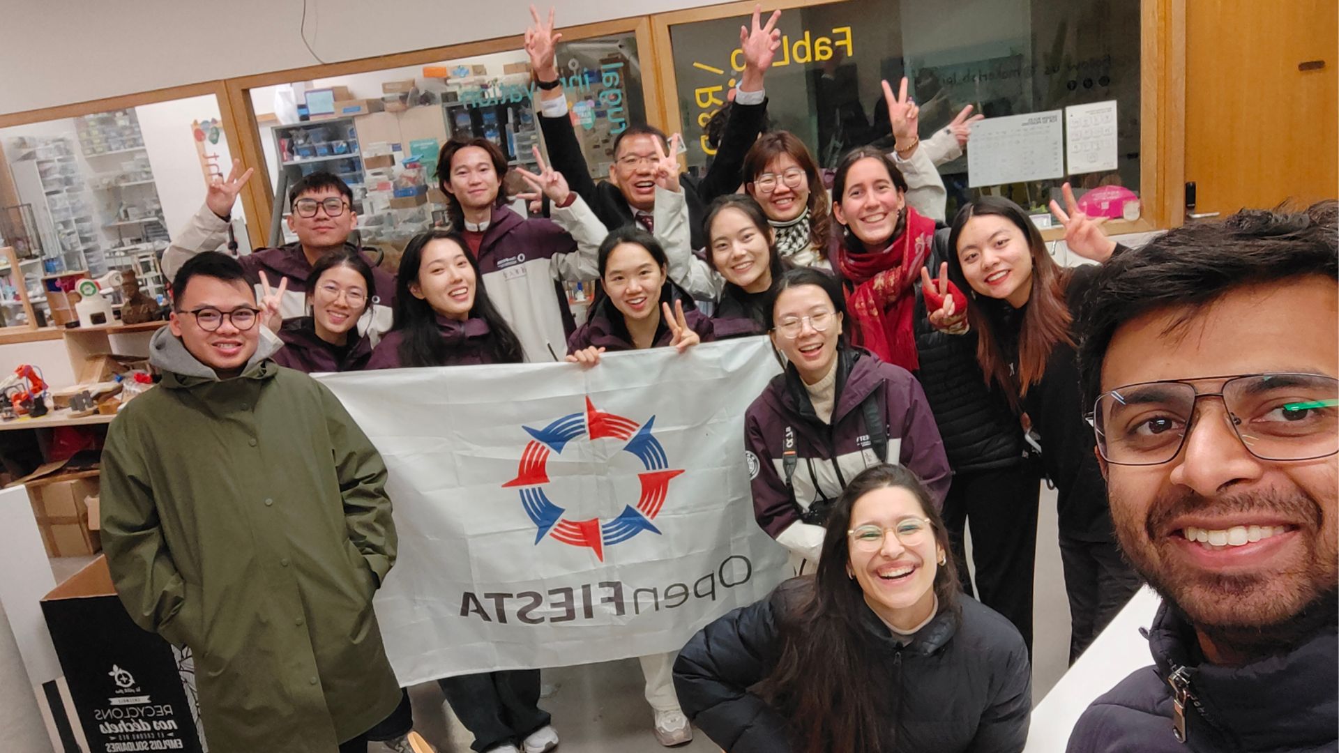 Après la session, les participantes et participants ont poursuivi leurs échanges autour des posters et ont visité certaines installations du LPI, notamment le Maker Lab. D’autres étudiantes et étudiants ont également pu participer à ces discussions informelles et créer des liens, en particulier Ziqi Yi, alumni des programmes Open FIESTA et EURIP, qui illustre les connexions que nous construisons.